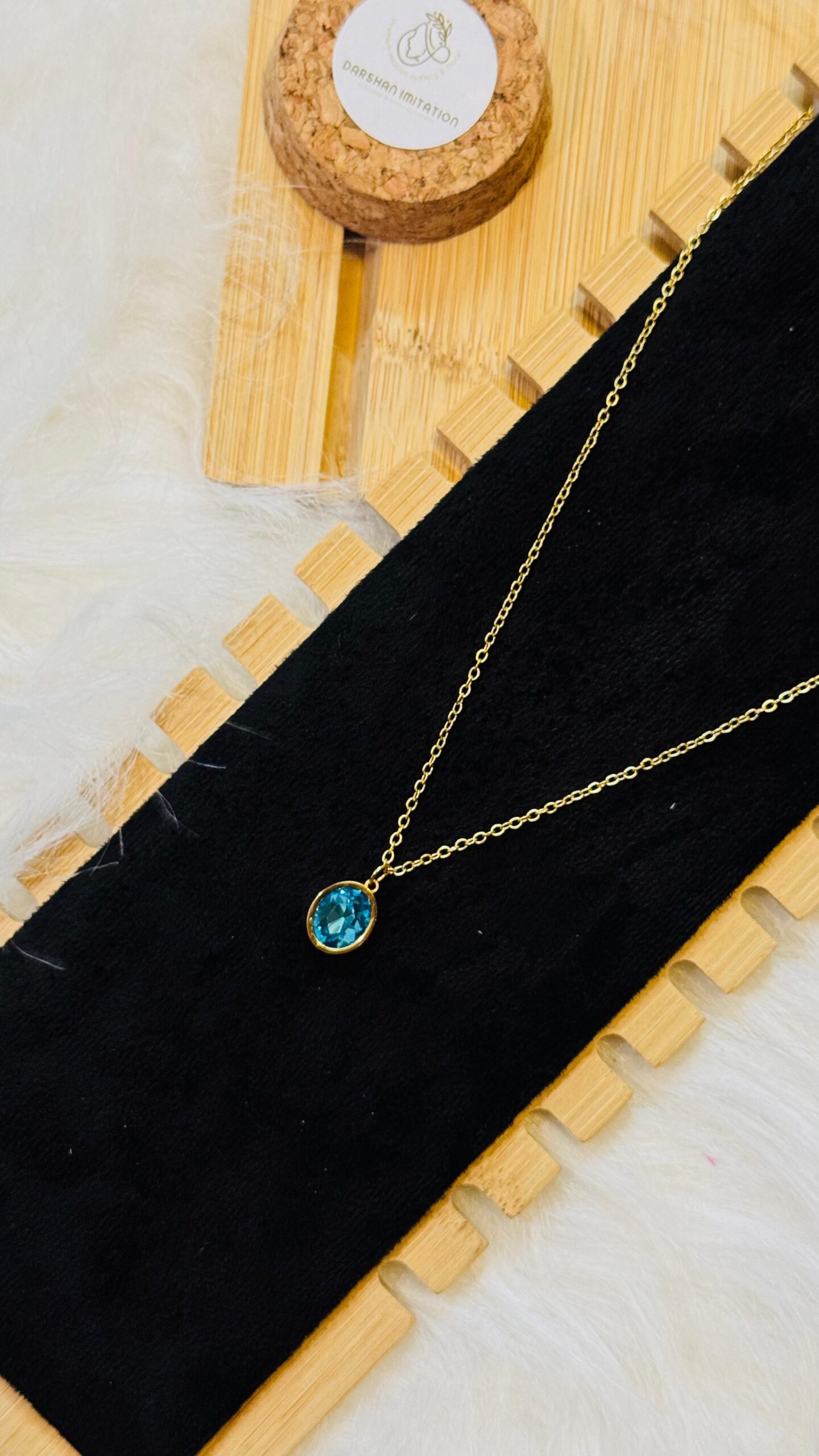 Blue Stone Gold-Plated Pendant Necklace