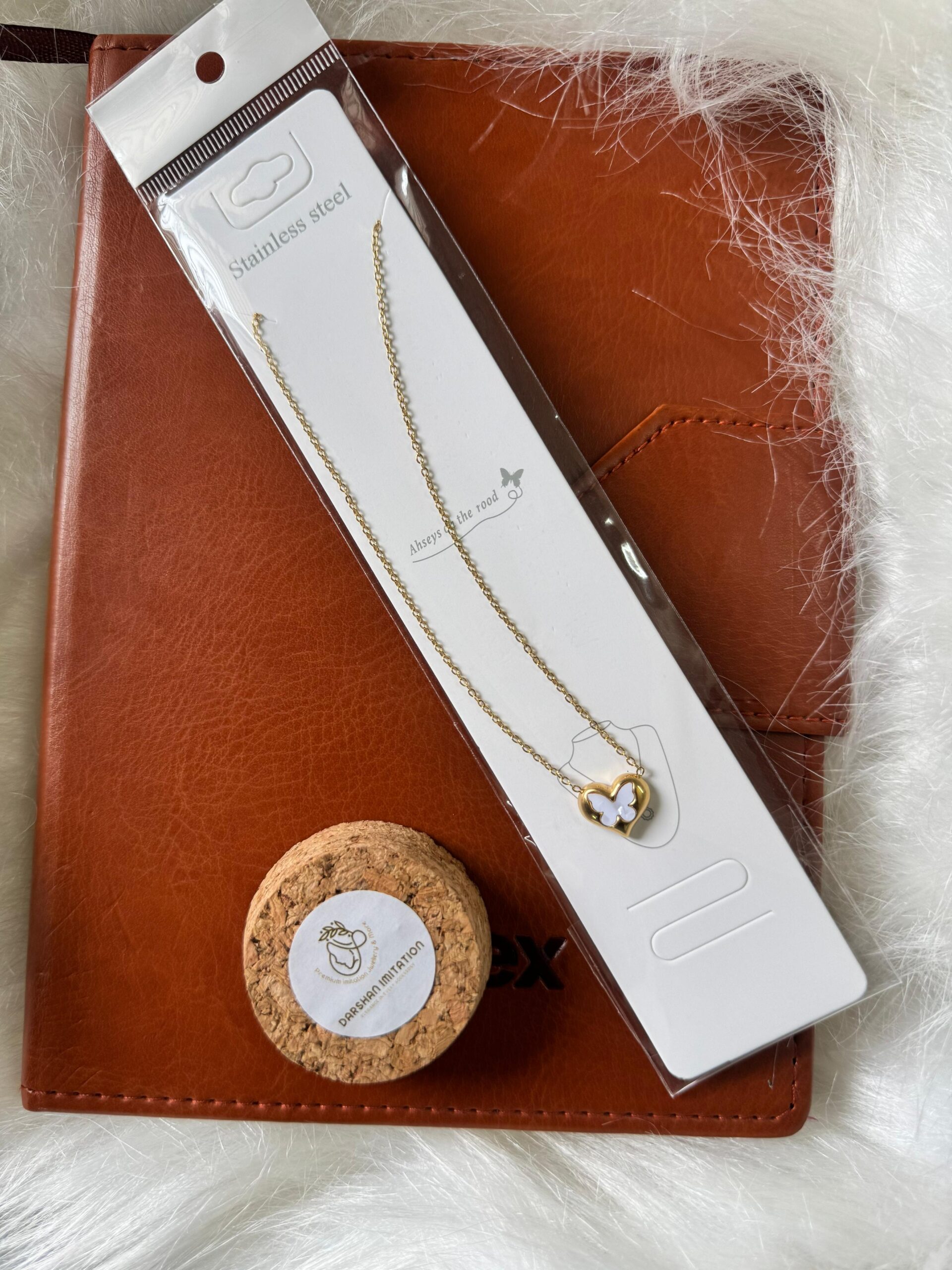 A stylish stainless steel necklace featuring a golden heart pendant with a delicate butterfly detail inside. Durable, lightweight, and elegant — perfect for daily wear or gifting.